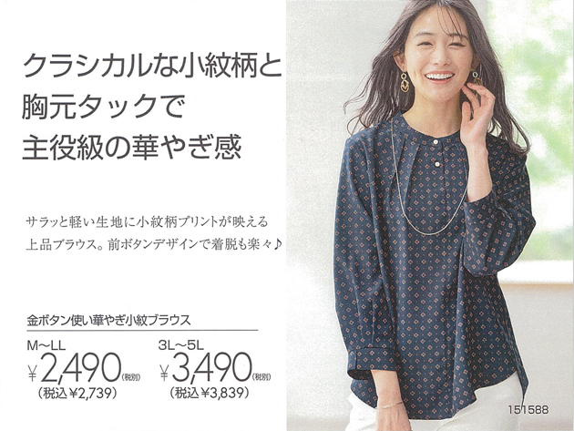 ベルーナ「金ボタン使い華やぎ小紋ブラウス」2025.9.25更新