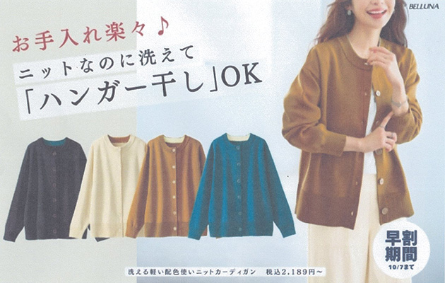 ベルーナ「洗える!軽い!配色使いニットカーディガン」2025.10.2更新