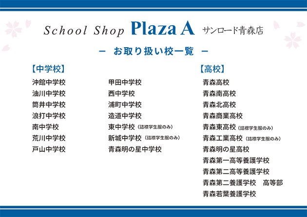 青森高、南高、北高、商業高校、明の星高、工業高校(詰襟学生服のみ)