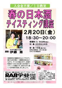 RAB学苑「春の日本酒テイスティング講座」2026.1.15更新