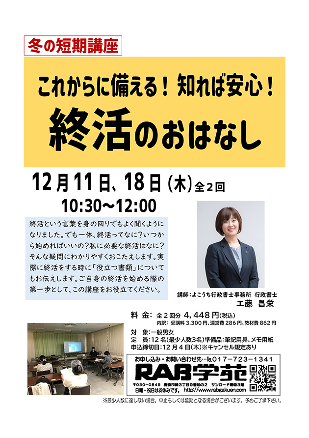 RAB学苑「短期講座・終活のおはなし」2025.11.20更新