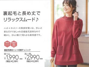 ベルーナ「裏起毛素材ニット切替チュニック」2025.12.4更新