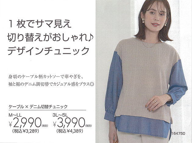 ベルーナ「ケーブル✖デニム切替チュニック」2025.9.16更新