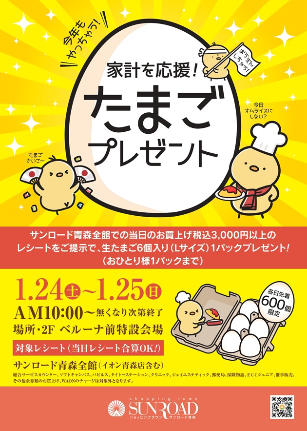 「家計を応援!たまごプレゼント」1月24日(土)~25日(日)開催!