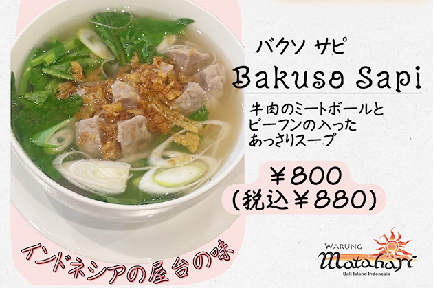 ワルン マタハリ「新メニュー Bakuso Sapi(バクソ サピ)」2026.2.26更新